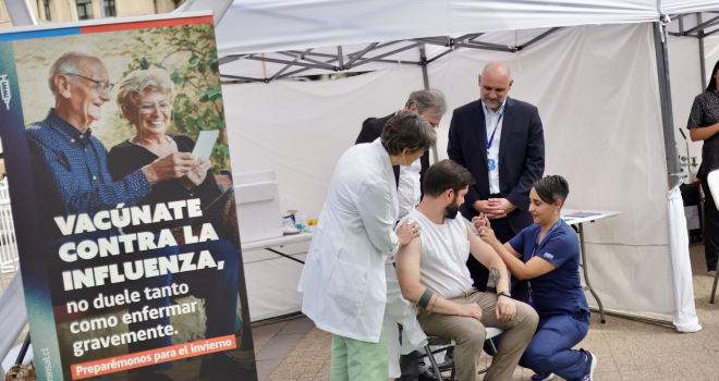 Entrado en un período de mayor circulación viral, como la Influenza, COVID-19 y el virus sincicial y para lo cual nuestro país tiene a disposición las vacunas correspondientes, el llamado es, si usted tiene más de 60 años, si padece de alguna enfermedad crónica y si tiene una niña o niño menor de 6 meses, a informarse de los puntos de inoculación. Vacunarse previene enfermedades graves y disminuye la presión en la red asistencial